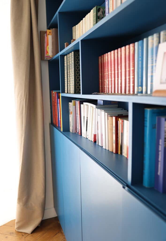 Création d’une bibliothèque sur mesure dans le séjour ;